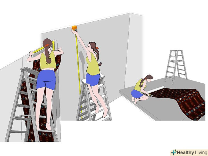 Поєднуємо візерунок. перед тим, як відрізати другий шматок паперу, переконайтеся, що малюнок збігається. В іншому випадку, вам слід відрізати кілька зайвих сантиметрів, щоб малюнок збігся. Після закінчення поверніть на місце Оздоблювальні планки і звільніть заклеєні отвори.