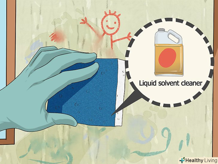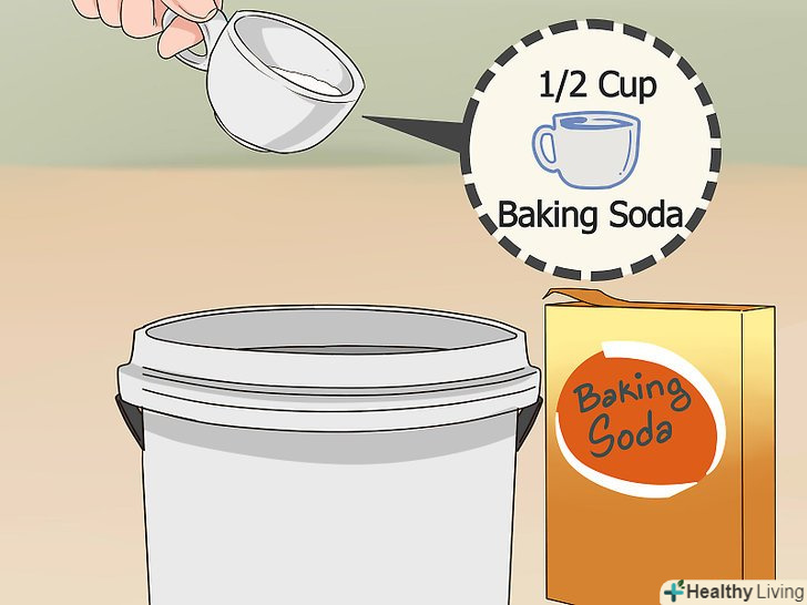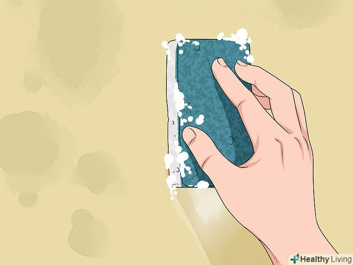 Приготуйте свій власний засіб від плям на стінах. це не так складно, як може здатися! Просто змішайте у відрі половину склянки харчової соди і 4 л теплої води. Збризніть цим розчином м'яку ганчірочку і потріть нею плями або липкі ділянки стіни, а потім змийте розчин чистою водою і витріть стіну насухо окремою ганчіркою. [4]