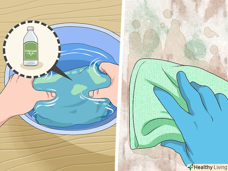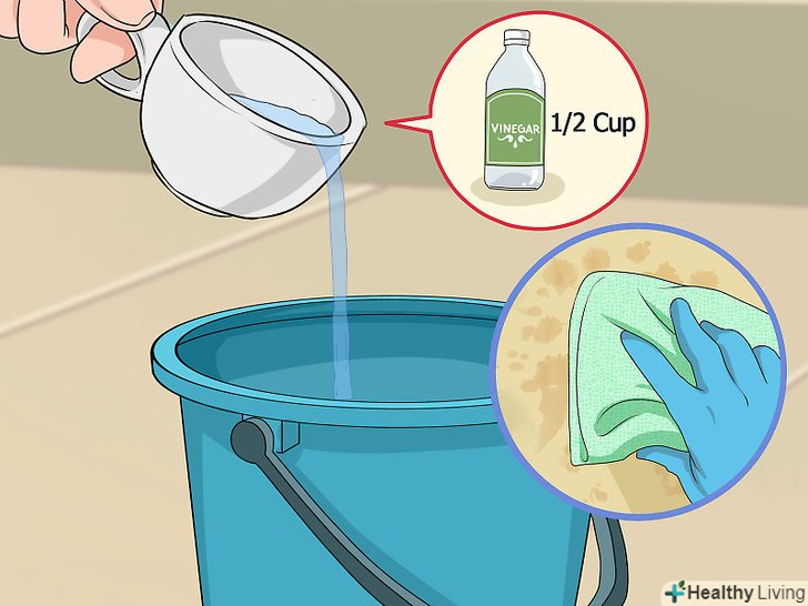 Для видалення плям скористайтеся розчином оцту. додайте у відро з теплою водою 120 мл білого винного оцту. Змочіть розчином м'яку ганчірочку і потріть нею плями, щоб стіни стали чистими як нові. [9]