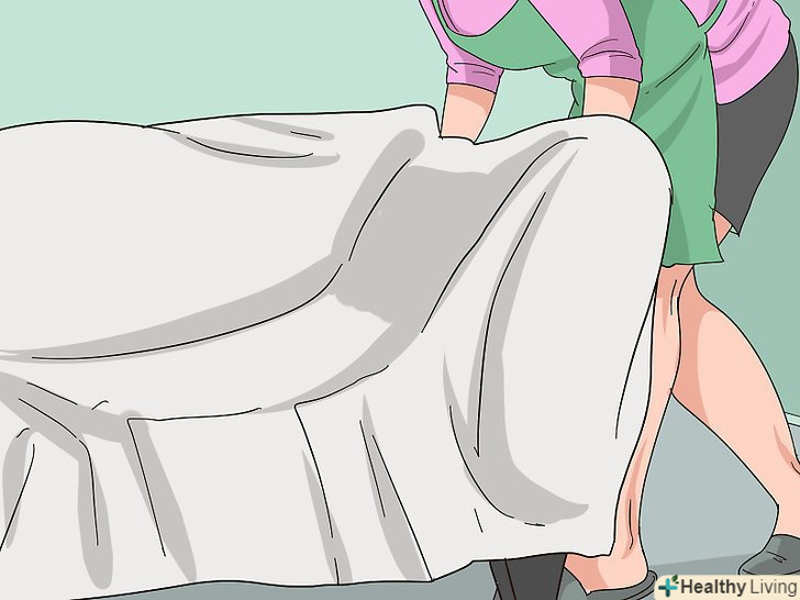 Прикрийте килими і меблі там, де збираєтеся зайнятися очищенням стін. За допомогою таких підручних засобів, як газети, рушники, старі простирадла або відрізи захисної плівки, прикрийте всі цінні предмети, щоб захистити від бризок води або чистячого розчину, наприклад, килими або меблі. Бракувало ще пошкодити яку-небудь ділянку інтер'єру в спробі очистити інший!