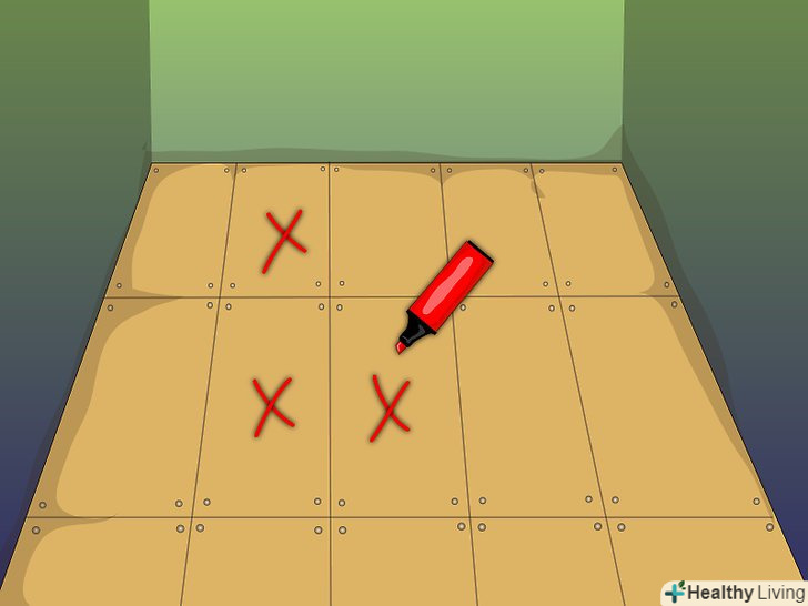 - Знайдіть і відзначте скрипучі області на підлозі перед тим, як знімати покриття. Вам потрібно буде сконцентруватися на цих ділянках під час роботи. Якщо ви працюєте з паркетом і провели довгий час в будинку, то вам напевно знайомі дуже скрипучі або ослаблені місця.