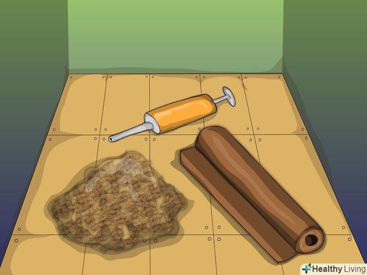 - Зніміть наявне підлогове покриття. Якщо основа підлоги з твердого покриття, ви можете наносити склад Green Glue прямо на нього. Покладіть тверду панель, наприклад деревоволокнисту плиту (МДФ), зверху на склад.