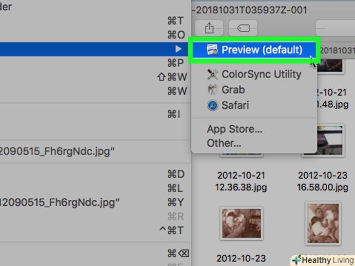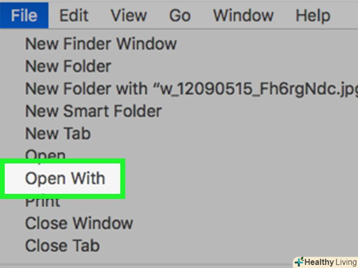 ВиберітьВідкрити за допомогою.ця опція знаходиться в меню "Файл". З'явиться спливаюче меню.