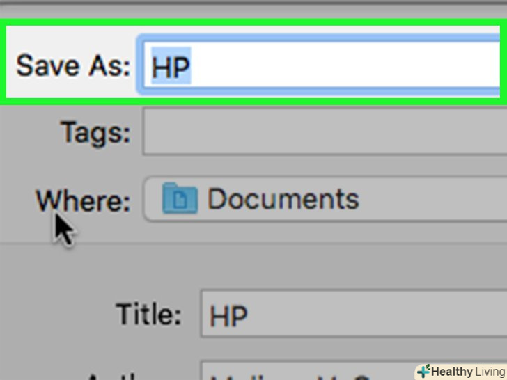 Введіть ім'я документа.у полі "Ім'я файлу" введіть ім'я створюваного PDF-документа.- Оскільки вибраний файл буде перетворений у формат PDF, документ PDF можна назвати так само, як вихідний файл, і зберегти його в папці з вихідним файлом.