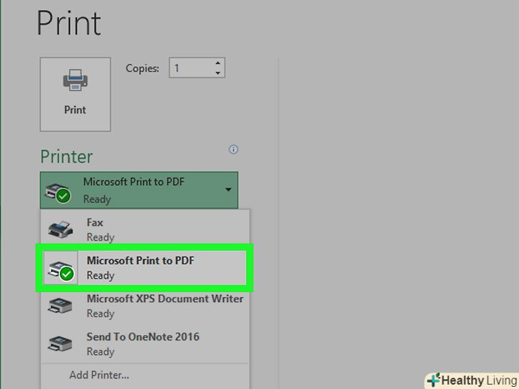 Натисніть на ім'я активного принтера.воно відобразиться у верхній частині меню в розділі "Принтер»або "принтери". Розкриється меню.- Якщо ви перетворюєте текстовий документ або документ XPS, пропустіть цей крок.