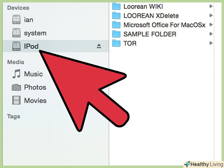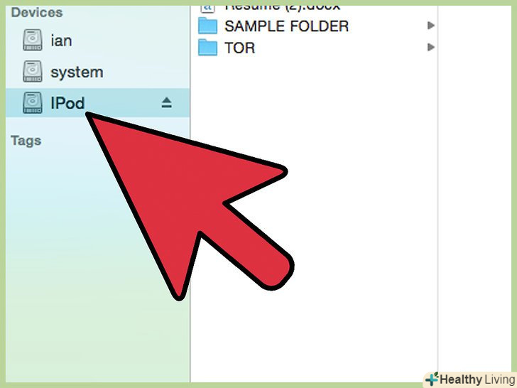 Отримайте доступ до диска iPod на вашому комп'ютері.для цього в Windows відкрийте вікно "Комп'ютер«, або» Мій комп'ютер«, або» цей комп'ютер", або просто натисніть Win+E. У Mac OS значок диска iPod буде відображатися на робочому столі.