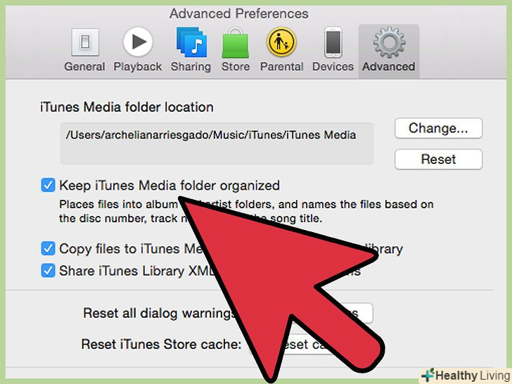 Упорядкуйте композиції.поставте прапорець біля «упорядкувати медіа папку iTunes» і «копіювати файли в медіа папку iTunes при додаванні в медіатеку».