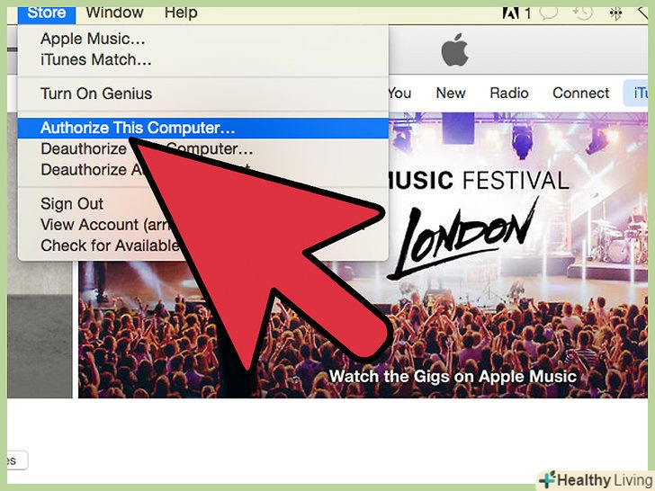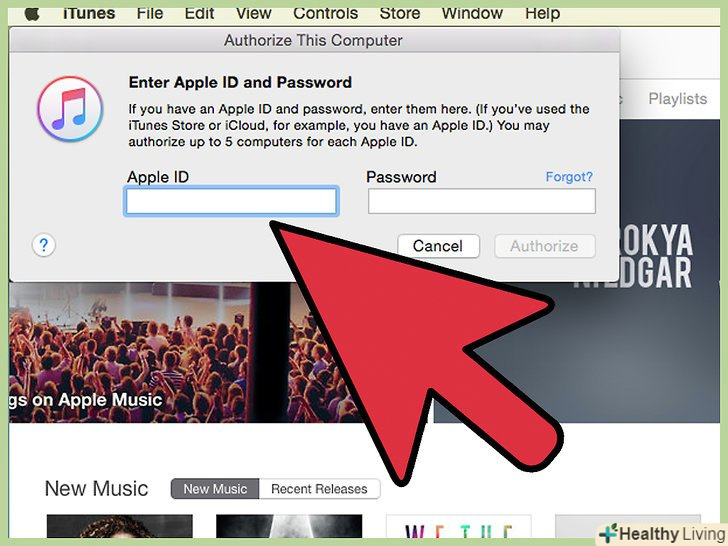 Запустіть iTunes на новому комп'ютері. Вам потрібно авторизувати комп'ютер за допомогою Apple ID, щоб ви смоги скопіювати куплені композиції на новий комп'ютер.- Прочитайте цю статтю для отримання інструкцій по скачуванню і установці iTunes.