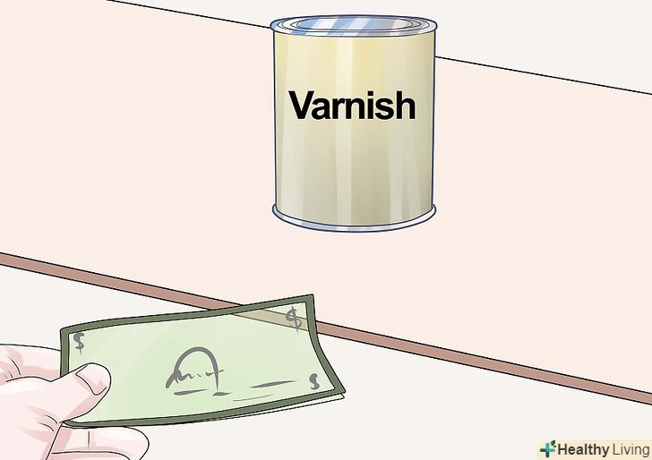 Купіть лак. ви зіткнетеся з різними варіантами; лак і поліуретан бувають різних обробок, включаючи глянсовий, напівглянсовий, матовий, сатиновий і плоский. Остаточний вибір обробки є питанням особистих переваг. Можливості лаку говорять про те, яку кількість квадратних футів (квадратних метрів) покриття очікувати. Залежно від розмірів вашого проекту, купуйте відповідну кількість.
