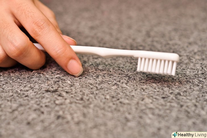 Злегка втирайте суміш в пляму від води. не втирайте тканину в килим. Дозвольте суміші покрити верхні краї плями. Не мочіть килим знову.