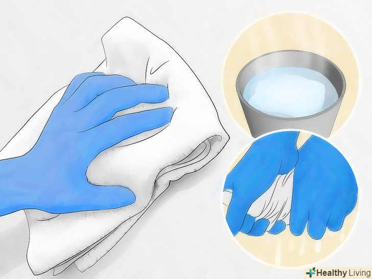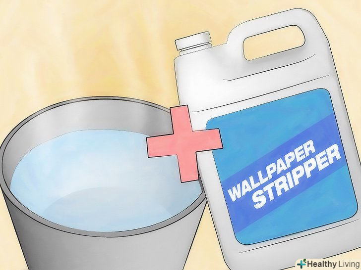 Наповніть відро гарячою водою. зробіть так, щоб вона була настільки гарячою, щоб рука ледь терпіла. Додайте до неї розчин для зняття шпалер в співвідношенні, наведеному в інструкції на пляшці.- Розчин оцту - також ефективне, дешеве і не токсичний засіб. Використовуйте 20%-й розчин. Якщо вам зручніше використовувати більш розбавлену концентрацію-експериментуйте.