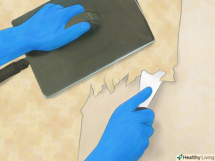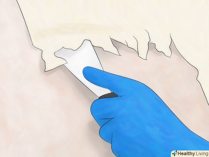 Покладіть захисну плівку на підлогу і на всі предмети, які хочете захистити від попадання крапель. при необхідності використовуйте маленькі цвяхи, щоб прикріпити плівку до країв стіни, але майте на увазі, що захисна плівка буде вільно рухатися по підлозі, навіть якщо ви прибиваєте її. Прибравши меблі з кімнати, в якій ви збираєтеся знімати шпалери, ви полегшите собі життя.