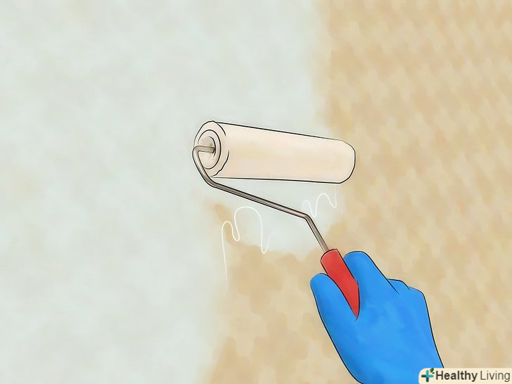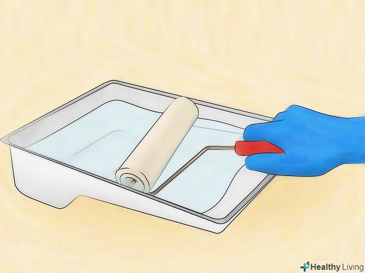 Намочіть валик для фарбування в розчині для зняття шпалер, змішаного з водою. підійдуть також губка або велика пензлик.- Побутовий розпилювач значно полегшить нанесення розчину, але при цьому розчин буде буде швидше охолоджуватися. Зважте альтернативи.