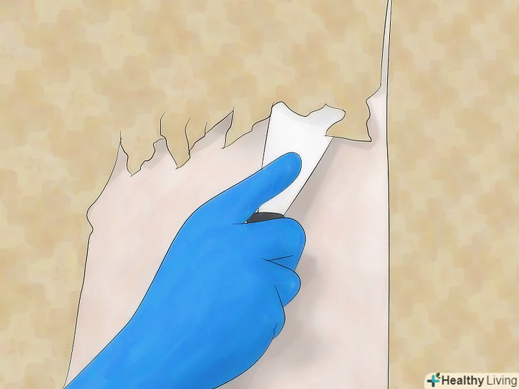 Зішкребіть і видаліть папір-основу зі стіни. використовуйте пластиковий шпатель, щоб зішкребти клейкі ділянки.