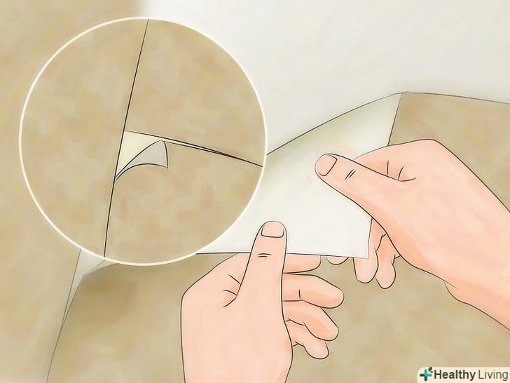 Знайдіть і відклейте кут верхнього шару. верхній шар зазвичай виготовлений з вінілу і повинен легко від'єднуватися. Знявши верхній шар, на вашій стіні залишиться папір-основа. Якщо шпалери порвуться, знайдіть новий кут і повторіть спробу.