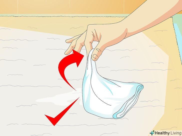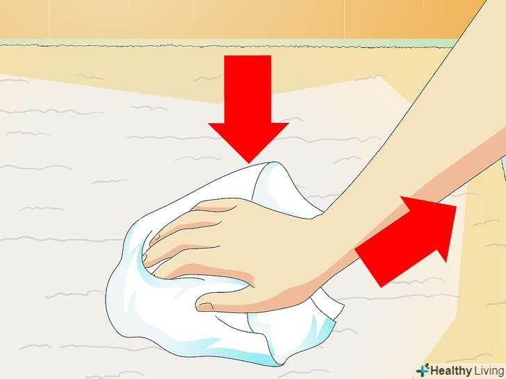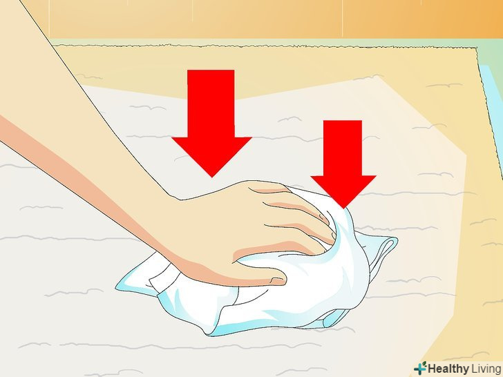 Протріть місце сухою тканиною або паперовим рушником. почніть з зовнішньої сторони вологого місця і продовжуйте протирати до самої основи килима, поки пляма не стане сухим.