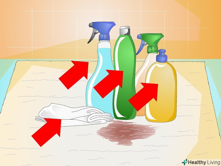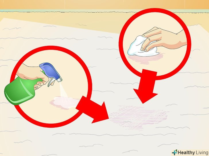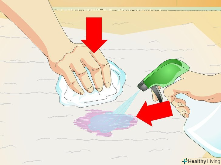 Обприскуйте пляму розчином з миючим засобом, а потім промакніте його сухою білою тканиною або паперовим рушником.