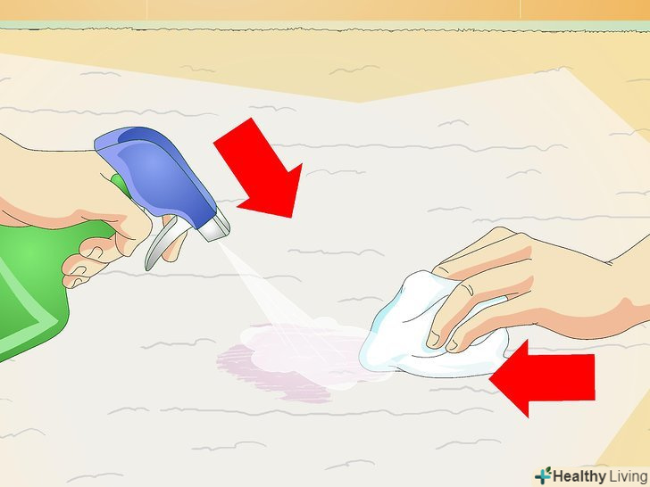 Якщо пляма як і раніше видно, сприсніте його розчином з оцтом. використовуйте іншу суху тканину або паперовий рушник, щоб промакнути місце, де ви розпорошили розчин.