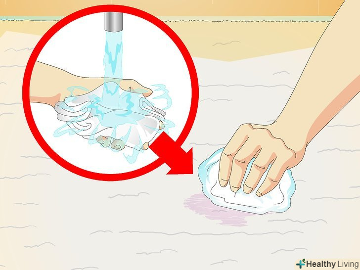 - Не наносьте на пляму занадто багато води. В цьому випадку чистячий розчин і вода для ополіскування будуть проникати сильно глибоко в волокна килима. Промакніте воду негайно, якщо ви випадково використовували занадто багато відразу.