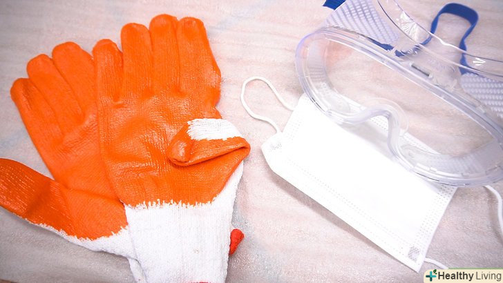 Надіньте захисний одяг, перш ніж починати процес видалення затірки. захисний одяг включає: захисні окуляри, респіратор і рукавички. Для комфорту одягніть наколінники, так як видалення затірки може зайняти деякий час.