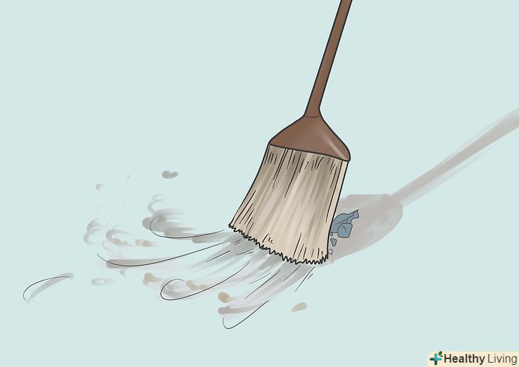 Протріть мітлою з щіткою з синтетики підлогу, щоб прибрати з нього пил і бруд.