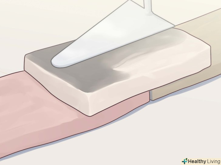 Нанесіть гідроізоляційний шар. гідроізоляційний шар зазвичай поставляється з самоуплотняющейся мембраною. Зніміть зовнішній шар, щоб відкрити клейку підкладку мембрани і просто приклейте її на вашу поверхню.- Слідкуйте за тим, щоб прикладати мембрану тільки в тих місцях, де це потрібно. Підкладка мембрани дуже сильно клеїться; якщо вона випадково приклеїться в невідповідному місці, то відклеїти її буде вельми проблематично.