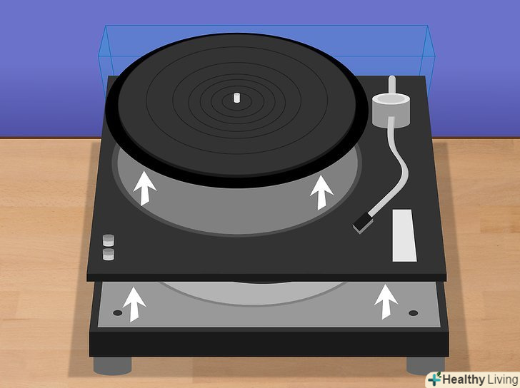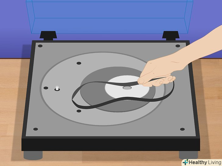 Відкрийте програвач, щоб дістатися до його нутрощів.залежно від моделі це можна зробити, від'єднавши нижню кришку, від'єднавши платформу для обертання пластинок або ж викрутивши гвинти, що дозволить витягнути назовні весь механізм. Після цього ви зможете дістати ремінь.