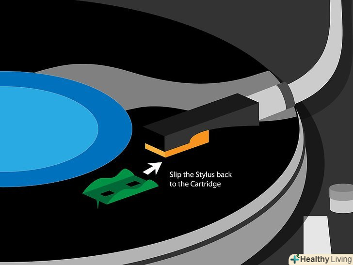 Вставте нову голку в гніздо головки звукознімача.кінчик повинен вказувати вертикально вниз.