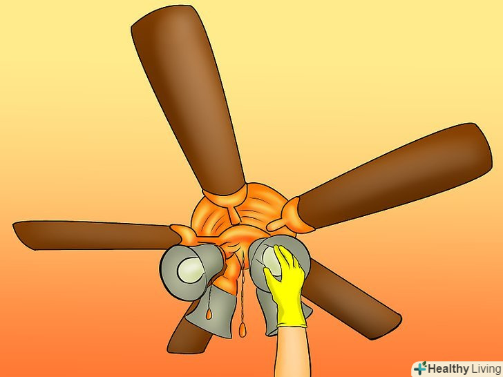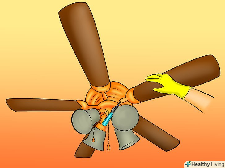 Викрутіть всі лампочки і зніміть всі плафони з вентилятора.