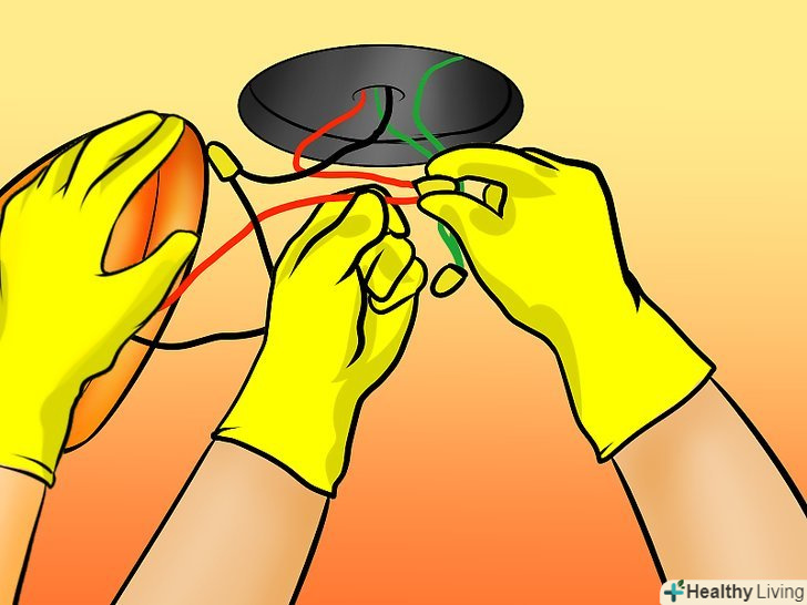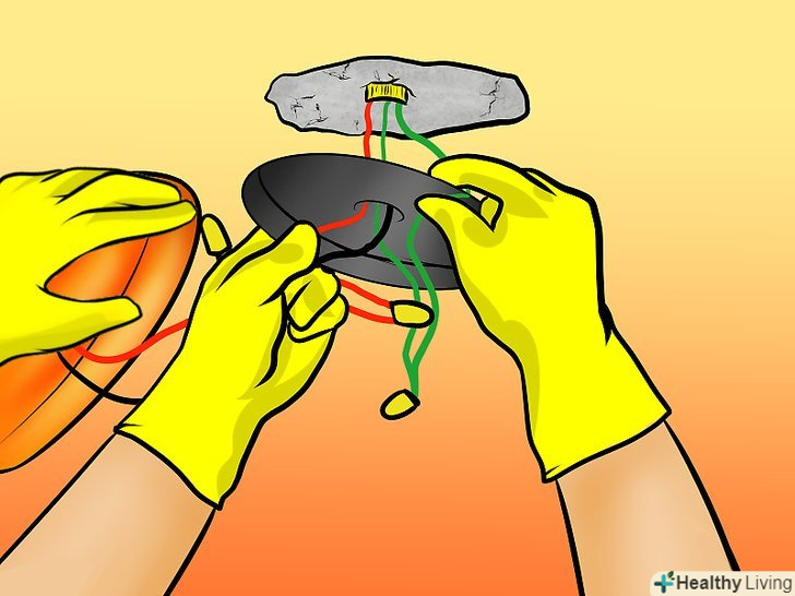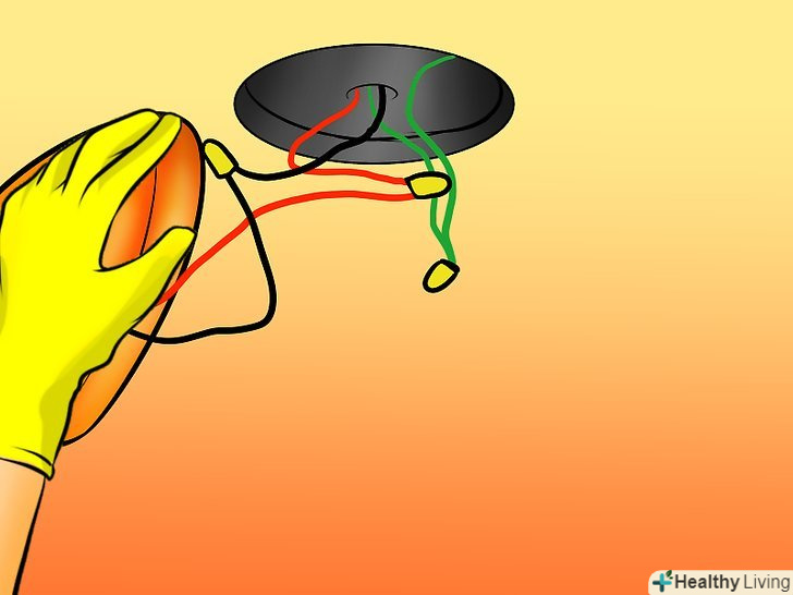 Якщо є можливість, попросіть кого-небудь потримати вентилятор, коли ви його відкрутіть від стелі. Як тільки ви зніміть вентилятор, ви побачите 2 або 3 дроти, якими підключений вентилятор до електричної коробки. Вимкніть / відкрутіть дроти, щоб від'єднати вентилятор від електричної коробки.