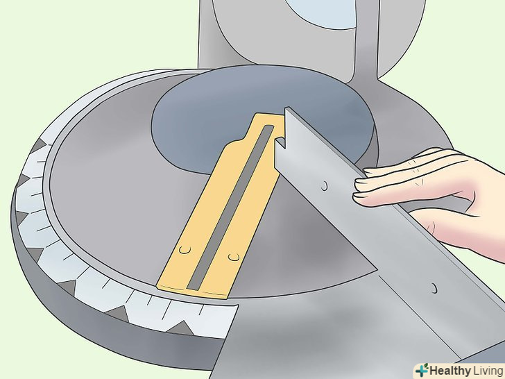 Встановіть верстат для різання під кутом на правильний кут. відведіть пиляє лезо верстата вліво до кута, Рівного половині величини, яку ви заміряли.