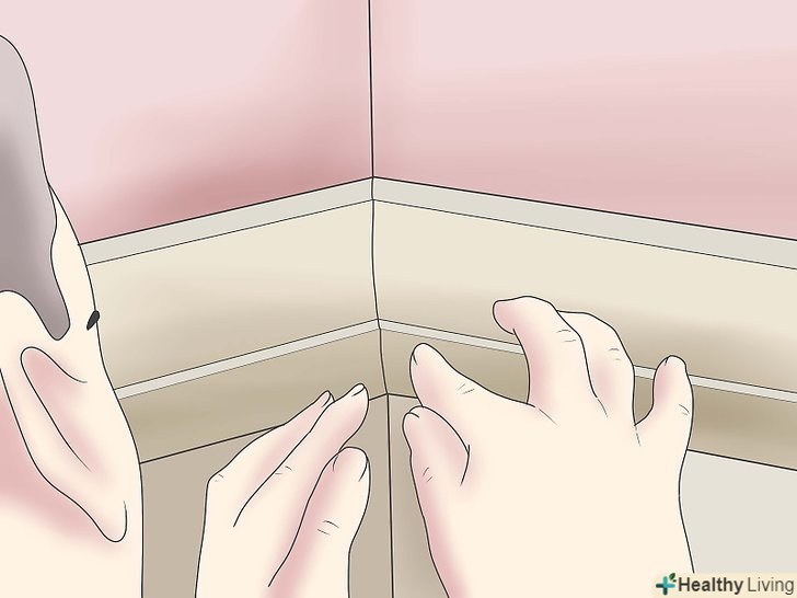 Перевірте стикування кута. помістіть перший плінтус з рівним зрізом в кут, присуньте до нього зрізаний під кутом плінтус. Максимально можливо вирівняйте положення обох плінтусів.- При вдалому збігу обставин, ваші плінтуса ідеально зійдуться з першого разу без будь-яких щілин.