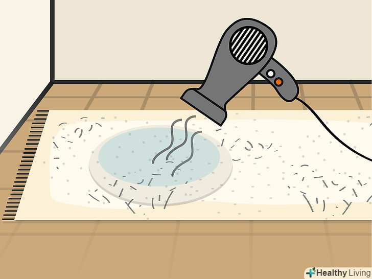 Висушіть килим феном на високій потужності. просочивши прим'ятий ділянку водою, подуйте на нього феном. Виставте на фені високу температуру. Якщо вм'ятина знаходиться далеко від розетки, використовуйте Подовжувач. Не вимикайте фен, поки ділянка не стане сухим. [10]