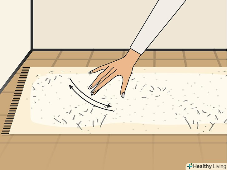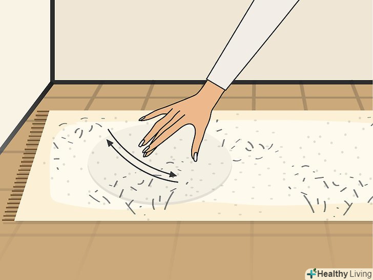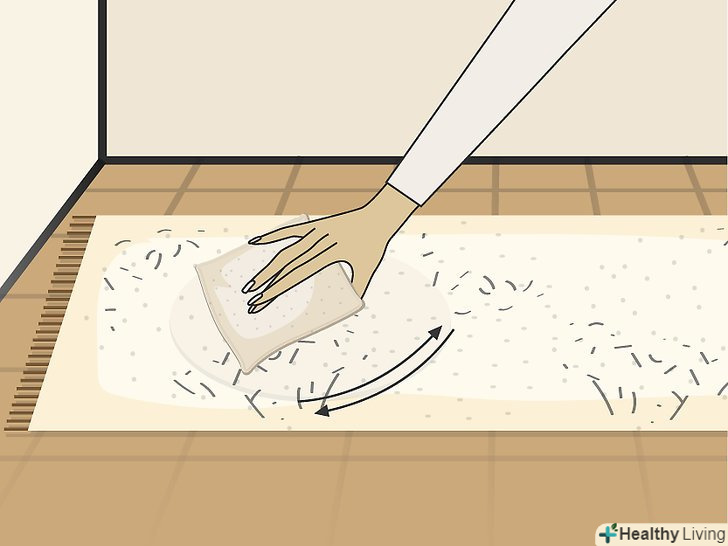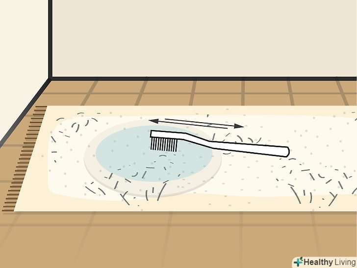 Вспушіть килим зубною щіткою. якщо килим досить мокрий, промокніть зайву воду губкою. Потім візьміть зубну щітку, щоб розпушити волокна килима. Килим також можна розгладити жорсткою щіткою. [7]