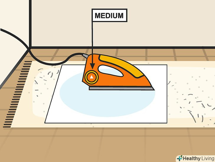 Увімкніть праску на середню потужність. виберіть середню температуру або увімкніть функцію пари. Праска не дозволить вирівняти вм'ятину, якщо буде занадто холодним, але на найвищій потужності їм можна зіпсувати як рушник, так і килим. [2]