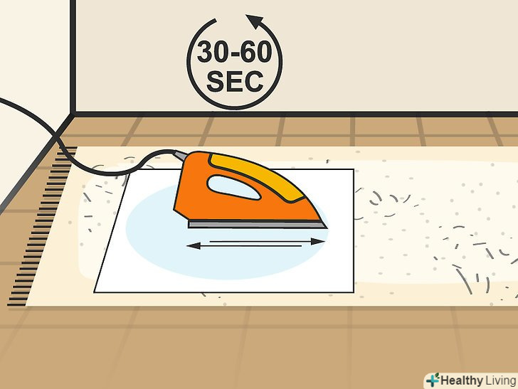 Рухайте праскою протягом 30-60 секунд. переміщайте праску по тканині протягом 30-60 секунд. Постійно переміщайте праска і стежте за тим, щоб він не торкався килима. Якщо ви надовго залишите праска в одному місці або доторкнетеся до килима, на килимі або тканини може залишитися підпалина. [3]