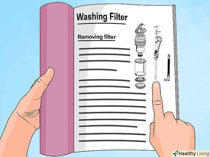 Перегляньте рекомендації виробника. Дізнайтеся, як витягти фільтр, якщо потрібно. Визначте, які фільтри можна мити і як часто це робити. Дізнайтеся, чи потрібно попередньо замочувати фільтр вашої моделі.- Деякі моделі, такі як DC07, оснащені миючим фільтром, а також післемоторним фільтром, який взагалі не потрібно мити. [1]