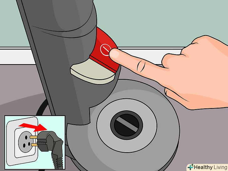 Від'єднайте пристрій від джерела живлення. вимкніть пилосос, якщо він включений в розетку. Посуньте вимикач в положення "Викл". Ні в якому разі не намагайтеся відкрити пилосос, поки він включений або підключений до мережі.