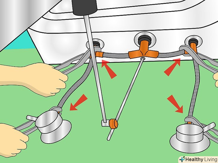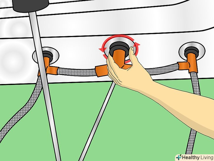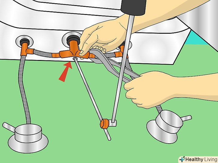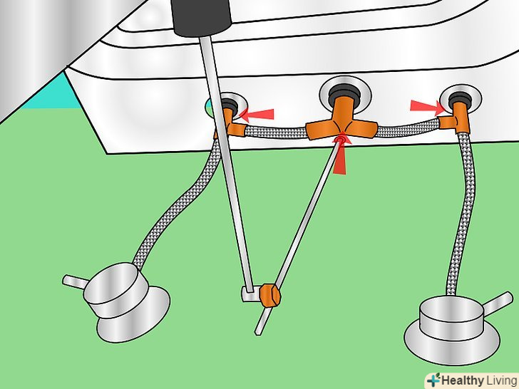 Надіньте Т-подібний трійник на кінець патрубка. підключіть його до гарячого і холодного вентиля і затягніть все на своєму місці.