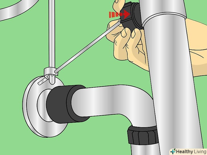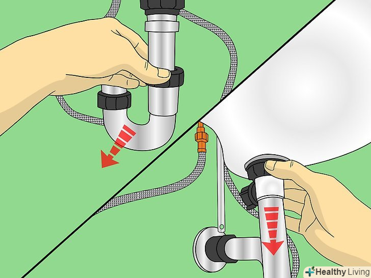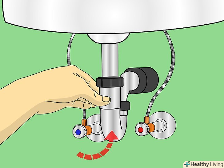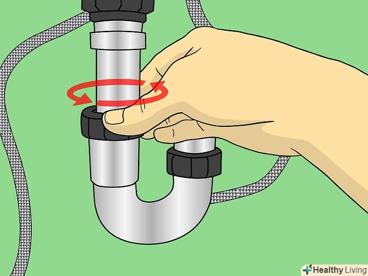 Зніміть відстійник( сифон), патрубок, і затяжний обід під раковиною, послабивши гайки.