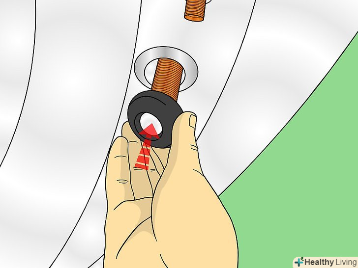 Помістіть прокладку, гайку, і пружинний хомутик на кульковий стрижень. кульковий стрижень прикріплений до підйомного стрижня, і містить кульку на одному кінці.