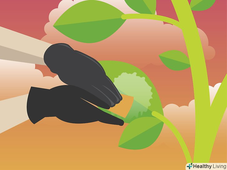 Зріжте уражені листя. виявлення залишків цвілі після протирання листя рушником свідчить про її активності. Уражені листя потрібно зрізати біля стебла за допомогою ножа. Потім викиньте їх. [6]