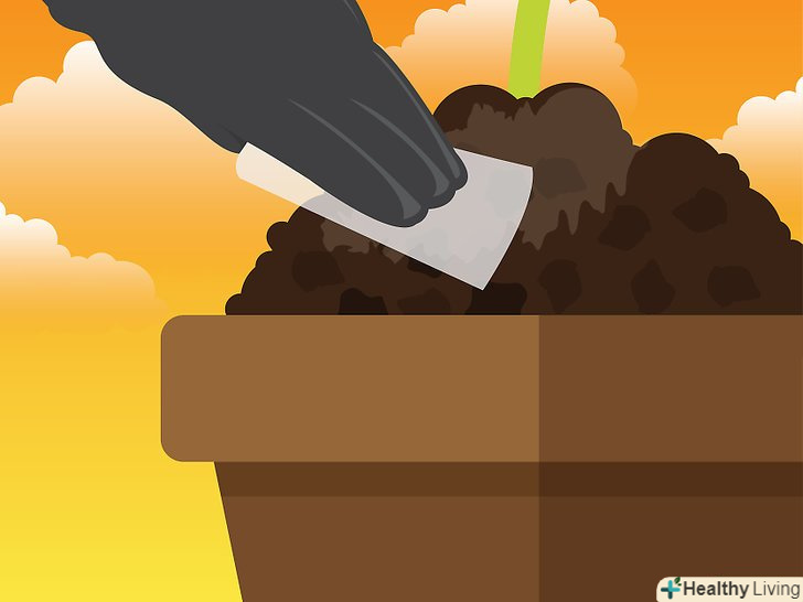 Приберіть всю цвіль. виявлена на поверхні грунту цвіль, швидше за все, не проникла глибоко. Ви легко зможете видалити її за допомогою ложки. Видима цвіль на грунті подібна сапрофітам, і вона нешкідлива для вашої родини. Однак якщо ви не приберете її, то вона може привести до гниття кореня. [1]- Пересадіть рослину, якщо ви виявили в грунті велику кількість цвілі, яка проникла в стінки горщика. Використовуйте при цьому високоякісний грунт.