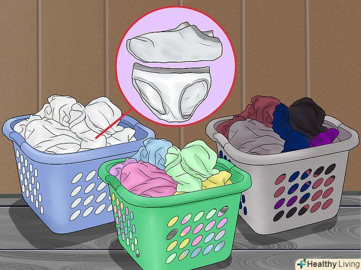 Купуйте спеціальний кошик. якщо ви перете кілька разів на тиждень або бажаєте спростити процес сортування різних речей, то купіть спеціальний кошик на кілька відділів, щоб прискорити підготовку. [13]- Перед покупкою підрахуйте точну кількість категорій білизни. Наприклад, купіть кошик з різними відділами для білих, світлих і темних речей.