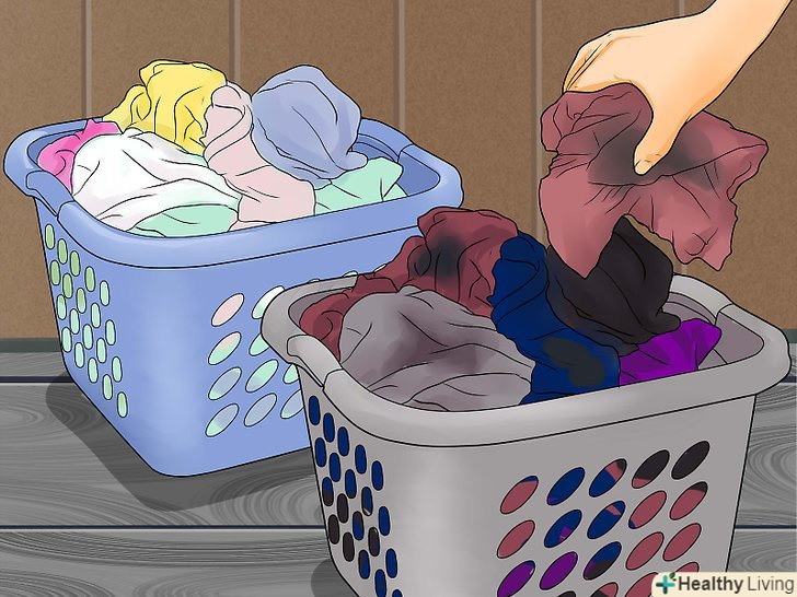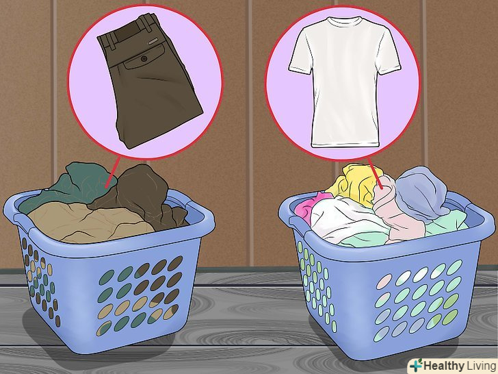 Розділіть речі за кольором. Колір-перша категорія для сортування. Кольорові речі можуть линяти і фарбувати біле та інше світле білизна. [2]- Окремо складіть білі, світлі і темні речі. [3] білі речі повинні включати шкарпетки, нижню білизну, футболки або інші речі з міцної бавовни. Зберіть в одну купу світлі речі рожевих, лілових, блакитних, світло-зелених і жовтих кольорів. Нарешті, темні речі включають білизну сірого, чорного, синього, червоного і пурпурного кольору.