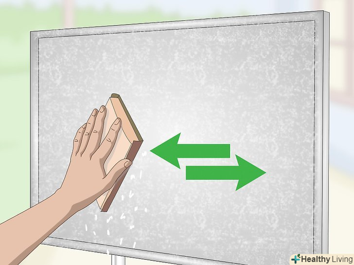 Протріть стару оцинковану сталь, щоб видалити білу іржу. При роботі з зношеним виробом можна помітити білу, як крейда, і порошкоподібну плівку на деяких ділянках сталі. Трохи терпіння і її можна з легкістю відшліфувати дрібнозернистим наждачним папером (з зернистістю 120 або менше). Відшліфуйте сталь плавними круговими рухами, поки поверхня не стане однорідною. [3]- Протріть поверхню сталі змоченою в теплій воді ганчіркою, щоб витерти пил.