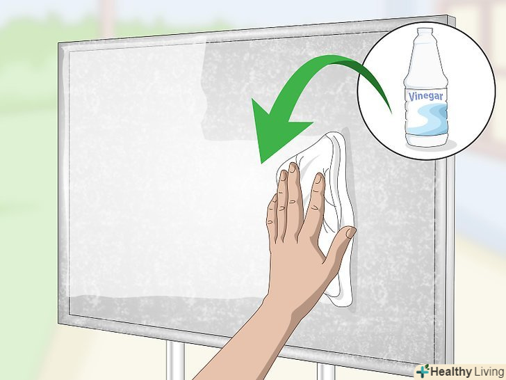 Протріть сталь білим оцтом. змочіть чисту суху ганчірку в дистильованому оцті, а потім вичавіть її. Ретельно пройдіться по оцинкованої сталі, періодично змочуючи ганчірку в оцті. Щоб фарбування була рівномірною, вона повинна лягати на всю поверхню виробу. [5]- Кислота в оцті протравить гладку оцинковану обробку, надаючи їй більш грубу текстуру, яка дозволить фарбі краще пристати.