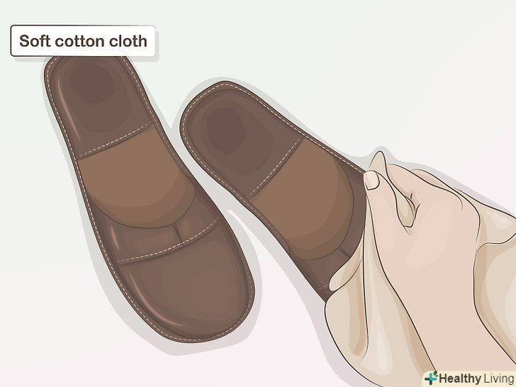 Поліруйте тапочки м'якою бавовняною ганчіркою. після чищення тапочок миючим засобом дайте їм постояти близько п'яти хвилин. Потім натріть тапочки до блиску м'якою чистою бавовняною ганчіркою. [27]