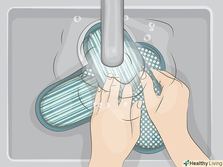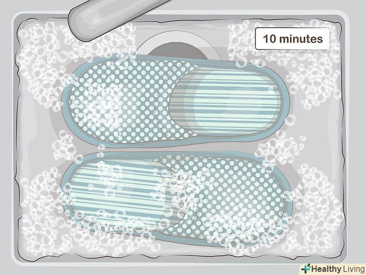 - У проміжках між носінням тапочок розміщуйте в них спеціальні кульки-освіжувачі для взуття. Вони дозволяють видалити запах. [34]
