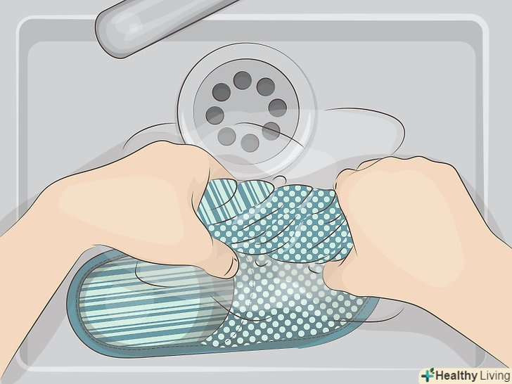 Сполосніть тапочки. після відмокання тапочок вам слід злити брудну воду з раковини. Далі включіть в крані теплу воду тієї ж температури, що ви використовували для замочування, і ретельно сполосніть тапочки. [8] при споліскуванні тапочок періодично віджимайте з них воду, як ви це робіть з губкою для миття посуду.- Для споліскування тапочок також можна повторно заповнити раковину водою і знову залишити їх відмокати на 10 хвилин. Для споліскування тапочок під проточною водою з-під крана буде потрібно близько 2-3 хвилин, щоб видалити всі залишки мила.